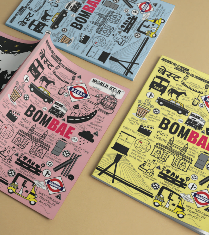 A4 Bombae Longbook features vibrant Mumbai-inspired cover designs that reflect the spirit of the city. It is crafted with strong binding and smooth, high-quality ruled pages for comfortable writing. Perfect for students, professionals, and daily note-taking with a stylish yet practical appeal.
